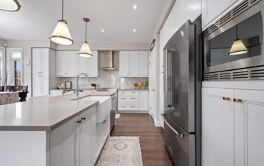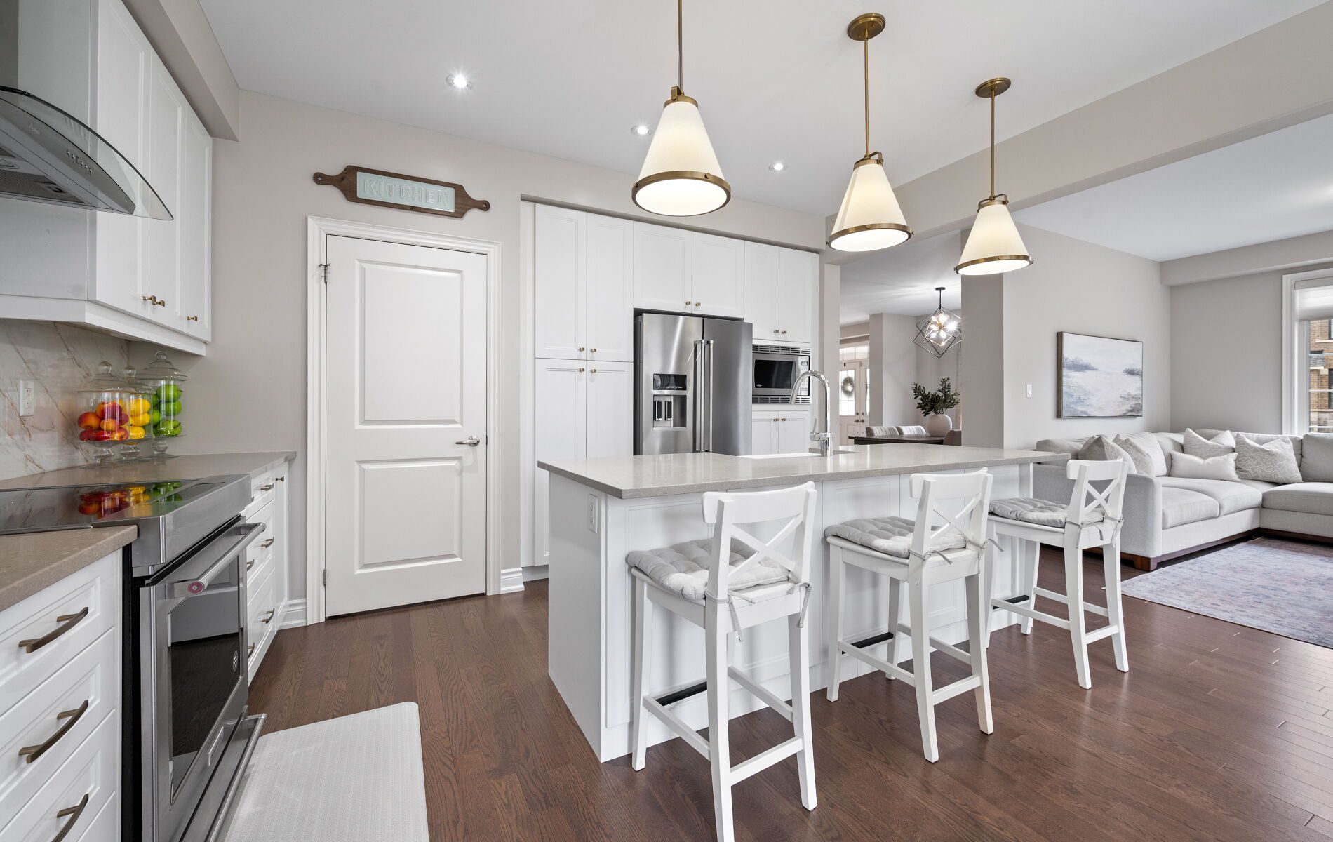 The kitchen serves as the centerpiece of the home. Designed with both functionality and style in mind, it features high-end appliances, a substantial centre island, and generous workspace suited for everyday use as well as entertaining. A built-in beverage cooler adds a thoughtful touch, reinforcing the home’s attention to detail.