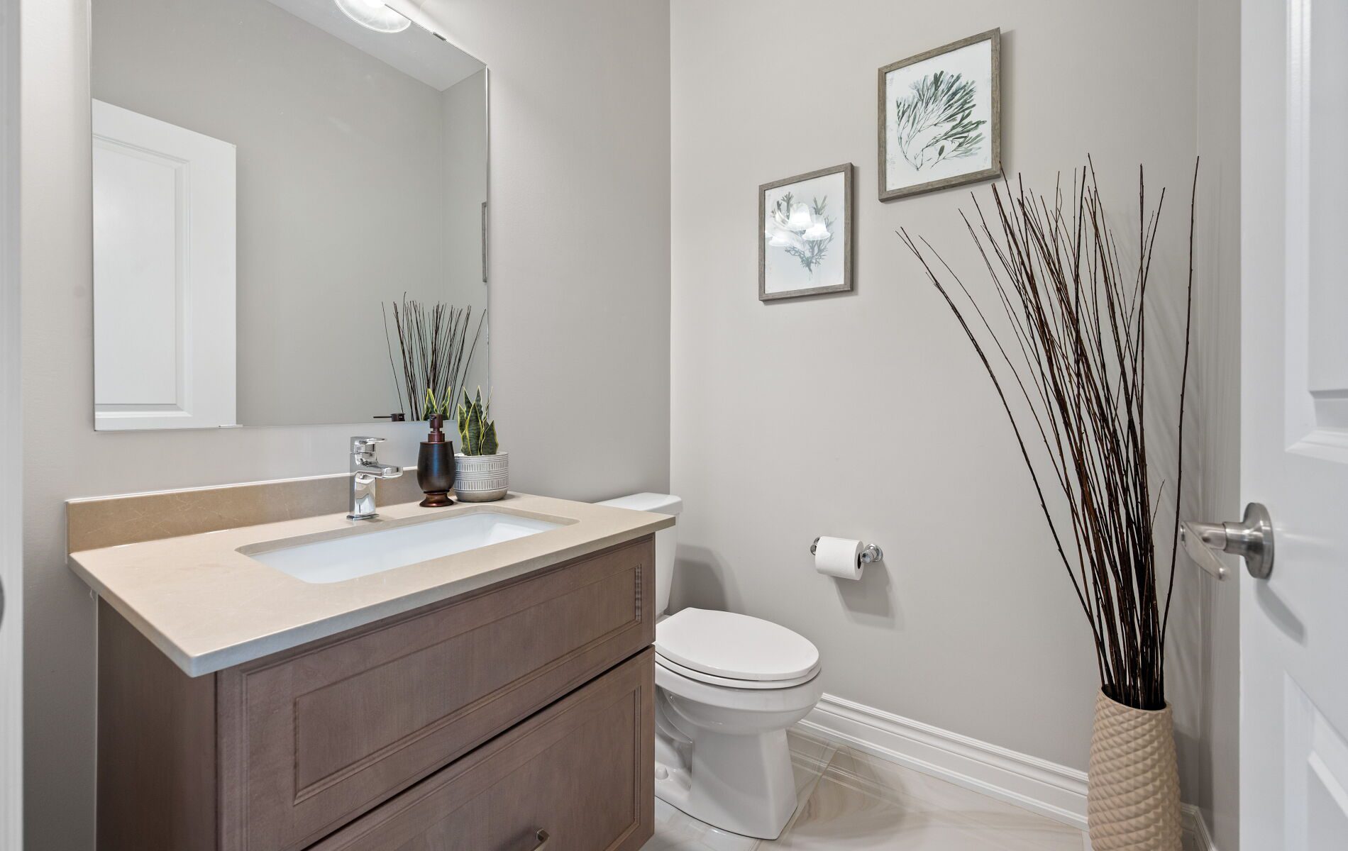 Practical elements have been carefully considered throughout the home. The main floor laundry room, which also functions as a mudroom with direct access to the garage, adds efficiency to daily routines while maintaining a clean and organized living environment.